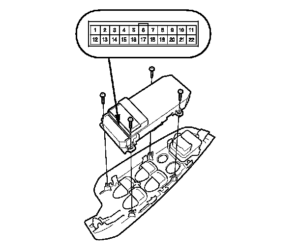 1. Remove the power window master switch and disconnect its connector. Power Window Master Switch Test/Replacement (2-Door)