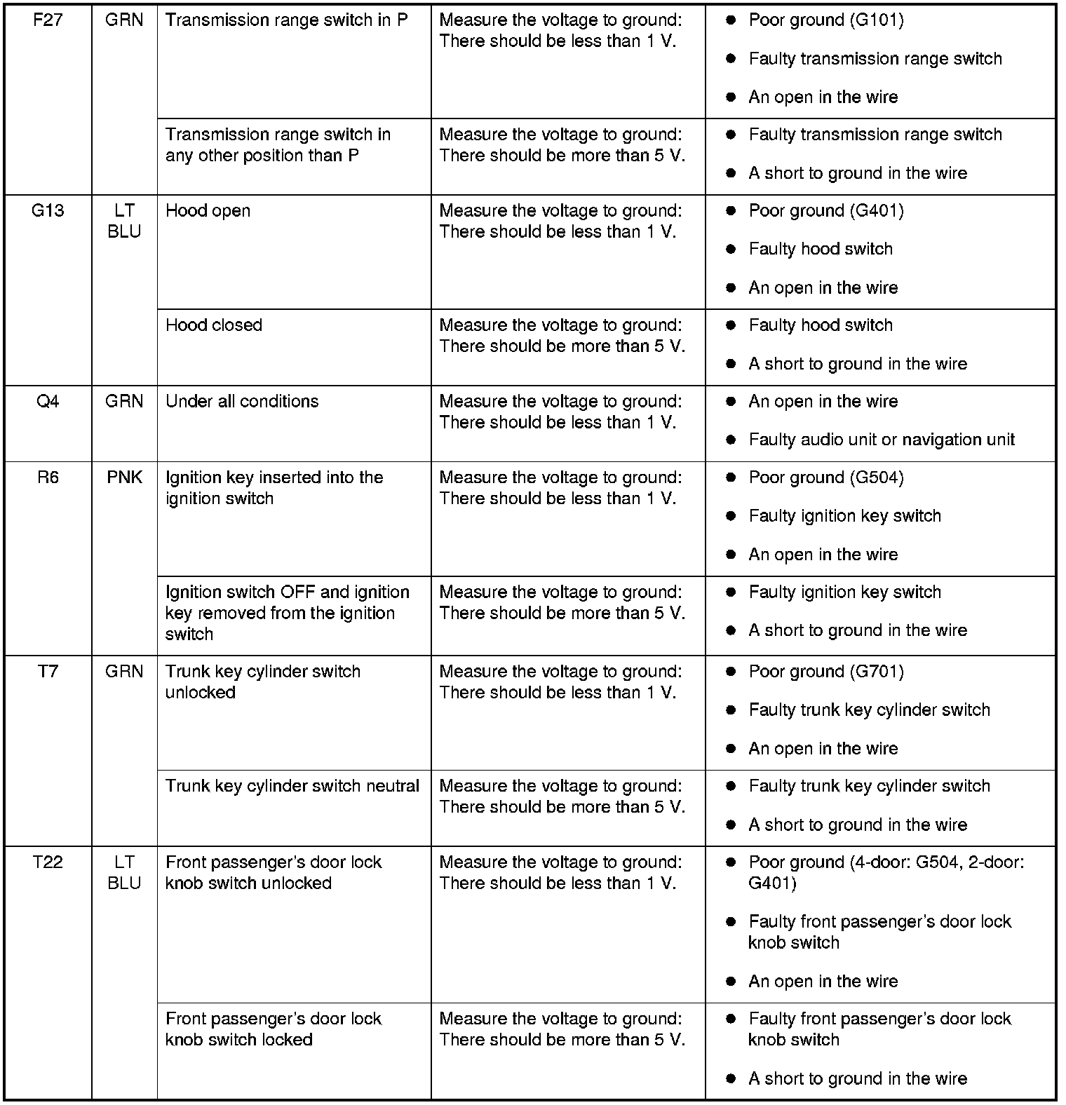 1. Before troubleshooting the keyless/poor door locks/security system, troubleshoot the system using B-CAN System Diagnosis Test Mode A. Troubleshooting - B-CAN System Diagnosis Test Mode A