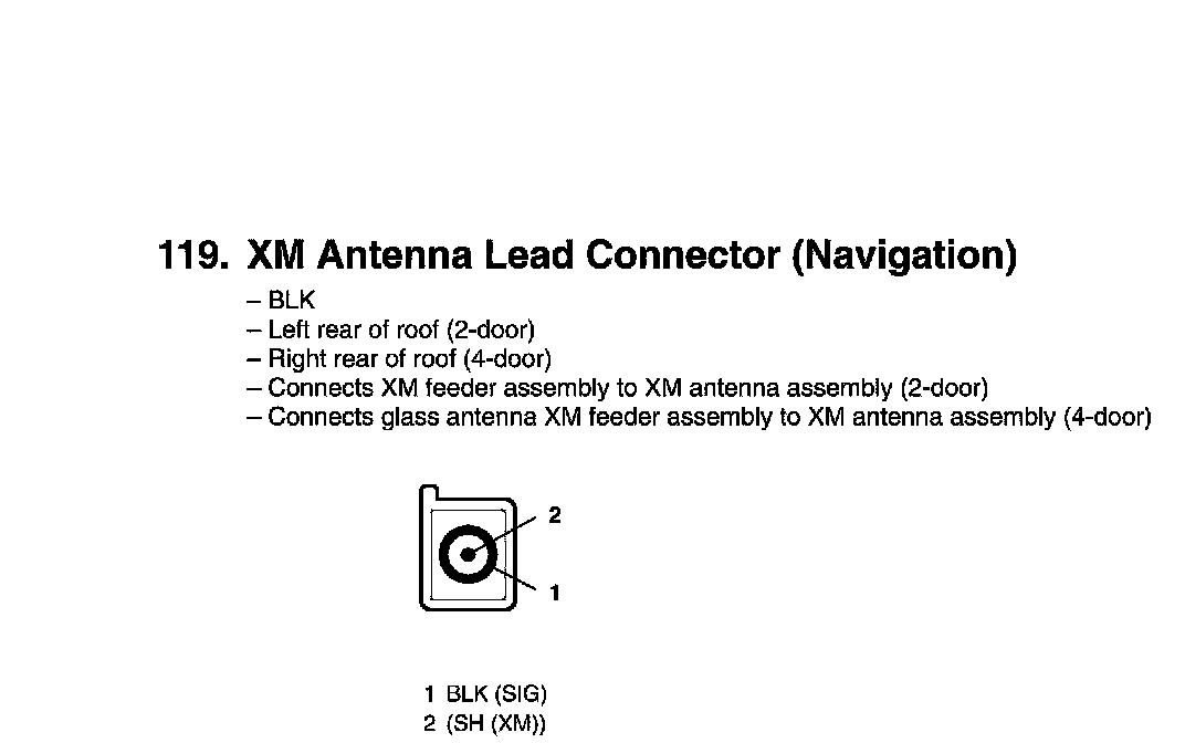 View 119 XM Antenna Lead Connector Connector View (Navigation)