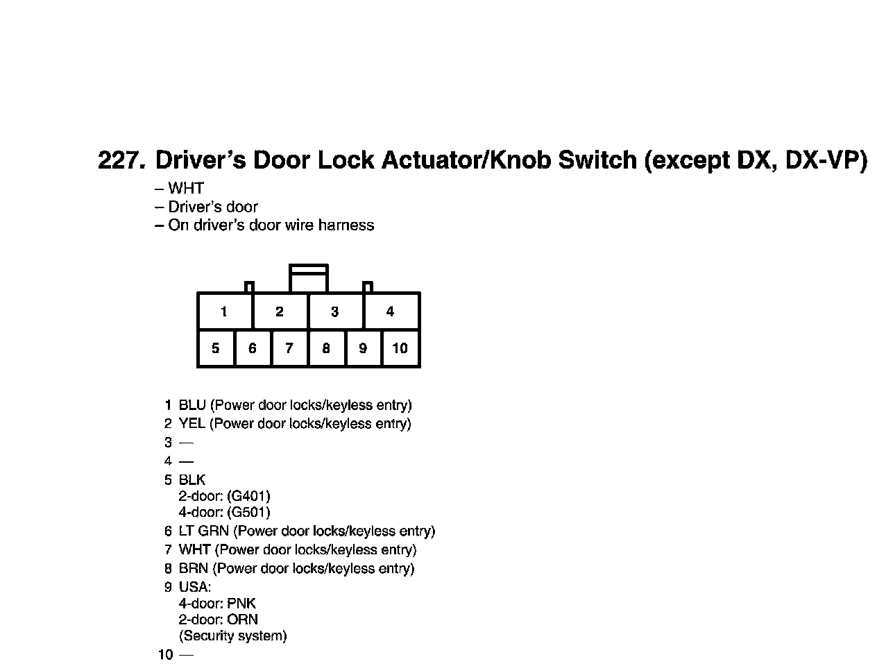 View 227 Driver's Door Lock Actuator/Knob Switch Connector View
