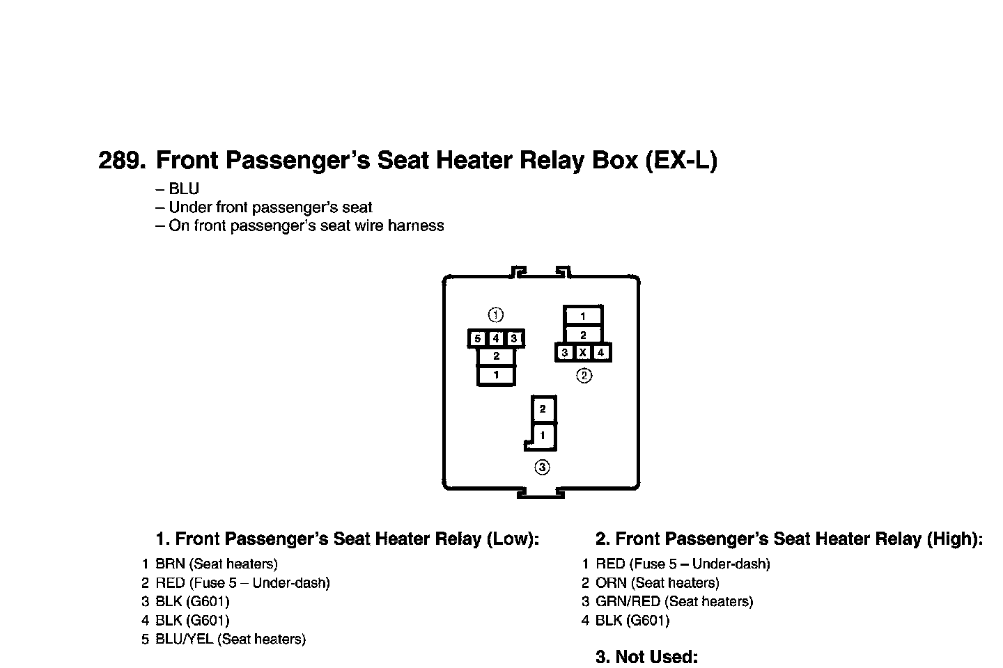 View 289 Front Passengers Seat Heater Relay Box Connector View