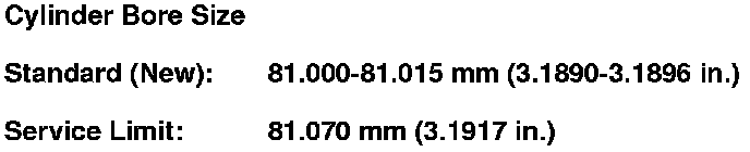 7. Calculate the difference between the cylinder bore diameter and the piston diameter. If the clearance is near, or exceeds the service limit, inspect the piston and engine block for excessive wear.