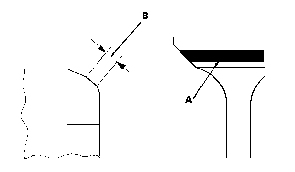 7. The actual valve seating surface (B), as shown by the blue compound, should be centered on the seat.