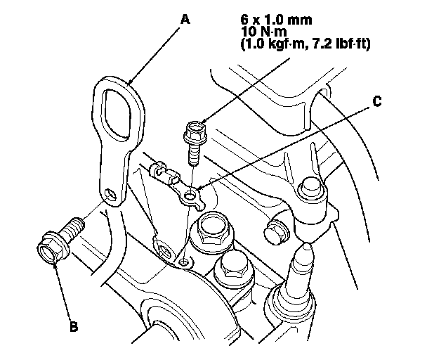 4. Attach the 1.8 support eyelet (A) to the cylinder head with the 1.8 support bolt (07AAK-SNAA500). Tighten the bolt by hand.