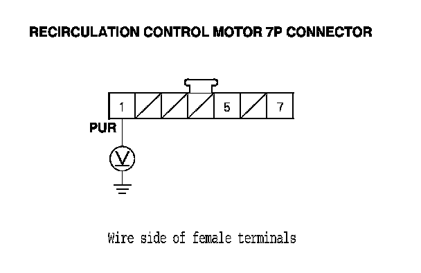 4. Measure the voltage between the recirculation control motor 7P connector terminal No. 1 and body ground.