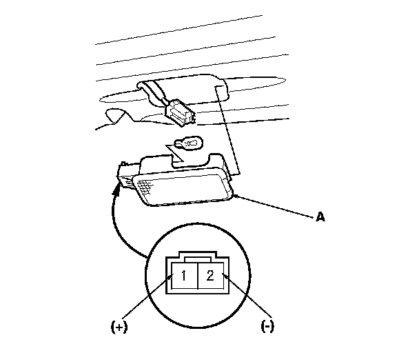 4. Check for continuity between terminals No. 1 (+) and No. 2 (-). There should be continuity. If there is no continuity, check the bulb. If the bulb is OK, replace the trunk light assembly.