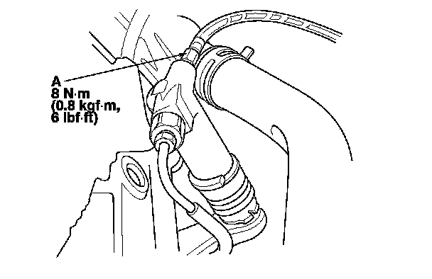2. Attach one end of a clear tube to the bleeder screw (A), and put the other end into a container. Loosen the bleeder screw to allow air to escape from the system.