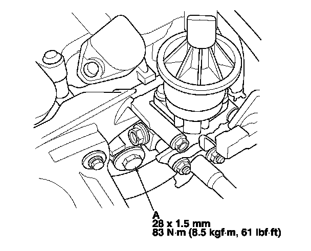 4. Remove the drain bolt (A) located at the front of the engine block.