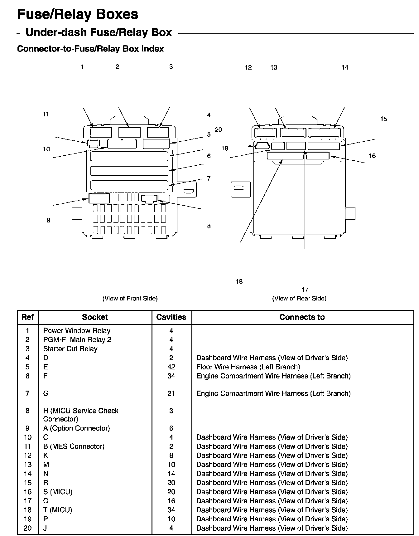 Under-Dash Fuse/Relay Box - Connector-to-Fuse/Relay Box Index
