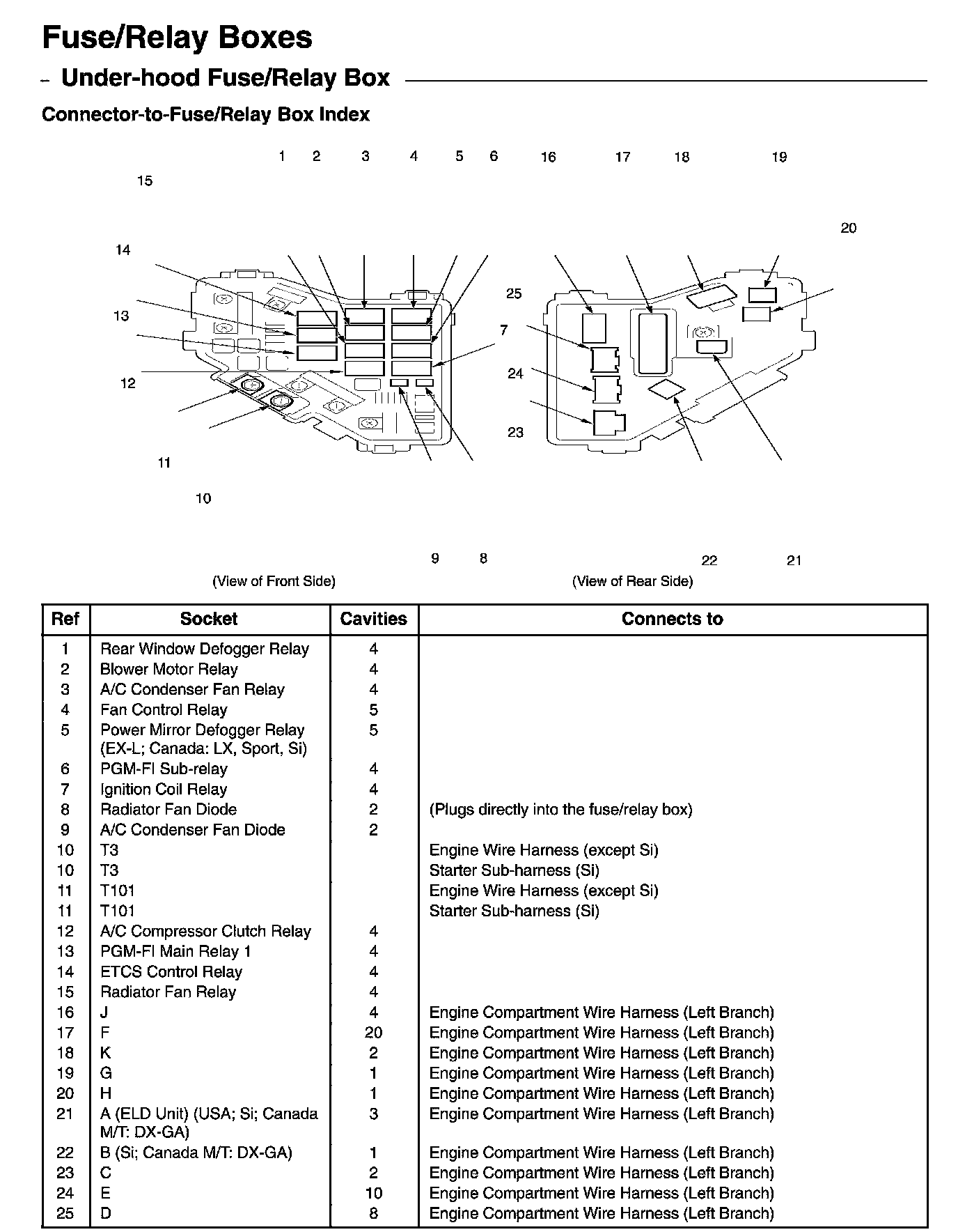 Under-Hood Fuse/Relay Box - Connector-to-Fuse/Relay Box Index