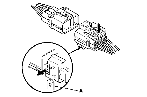 - Before connecting connectors, make sure the terminals (A) are in place and not bent.