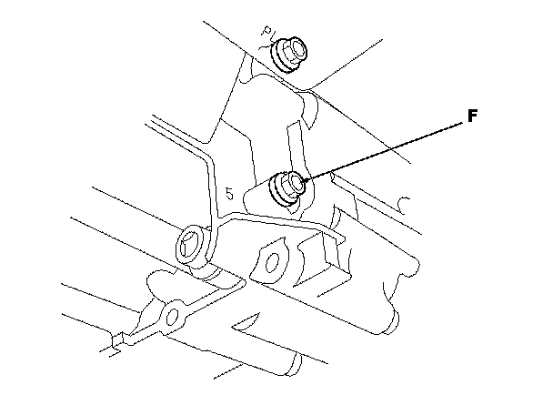 28. Shift to R, then release the brake pedal. Measure the 5th clutch pressure at the 5th clutch pressure inspection port (F) while holding the engine speed at 2,000 rpm.