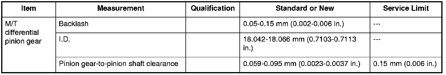 M/T Differential Pinion Gear Specifications