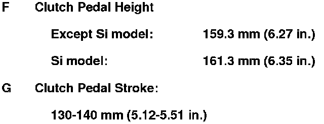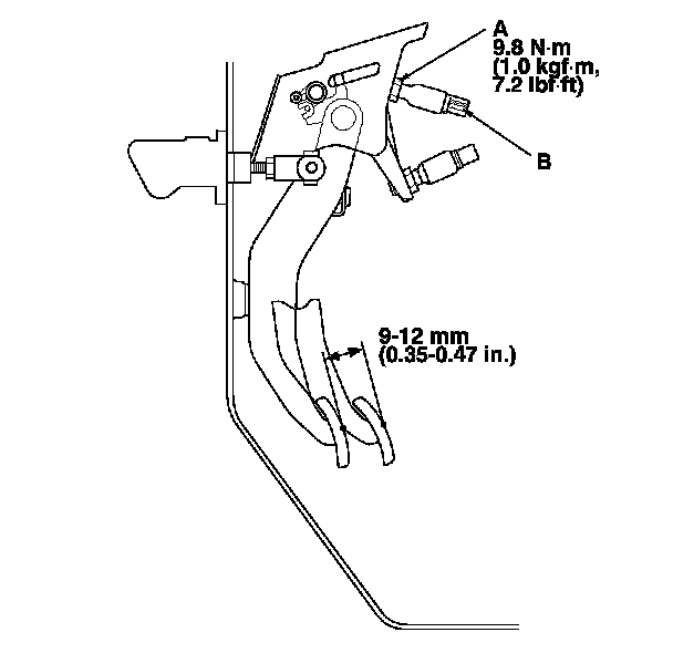 9. Fully press the clutch pedal to the floor, then release the clutch pedal 9-12 mm (0.35-0.47 in.) and hold it there.