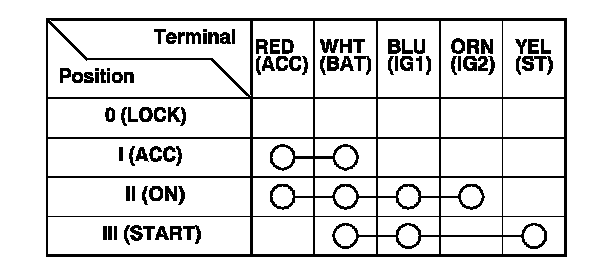 5. If the continuity is not as specified, replace the ignition switch. Ignition Switch Replacement