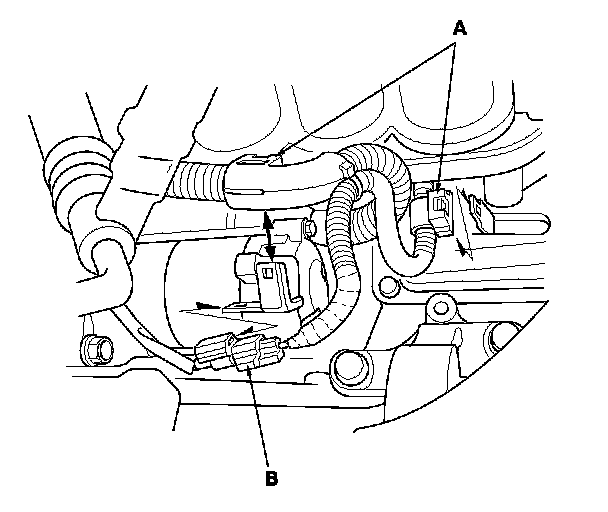 4. Remove the harness clamps (A) and the harness connector (B) from each clamp.