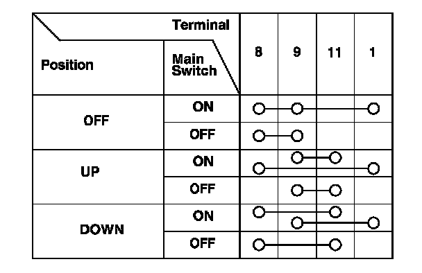 The driver's switch is combined with the control unit, so you cannot isolate the switch to test it. Instead, run the master switch input test procedures. Power Window Master Switch Input Test (2-Door) If the tests are normal, the driver's switch must be faulty.