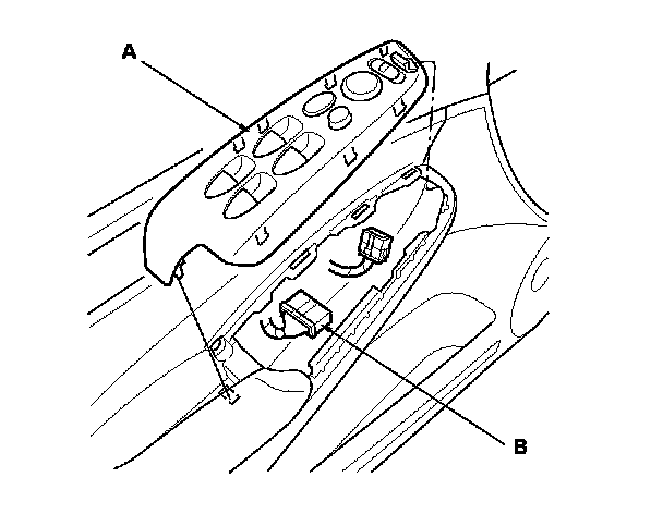 2. Disconnect the 22P connector (B) from the power window master switch.
