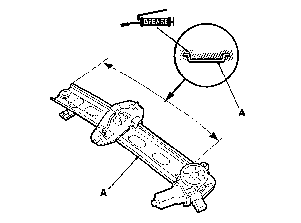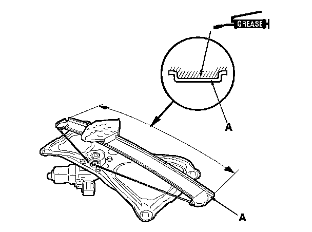 7. Apply multipurpose grease to all the sliding surfaces of the regulator (A) where shown.