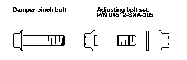 - The camber angle can be adjusted up to ±25 ' (center of tolerance) by replacing one damper pinch bolt with the adjusting bolt.