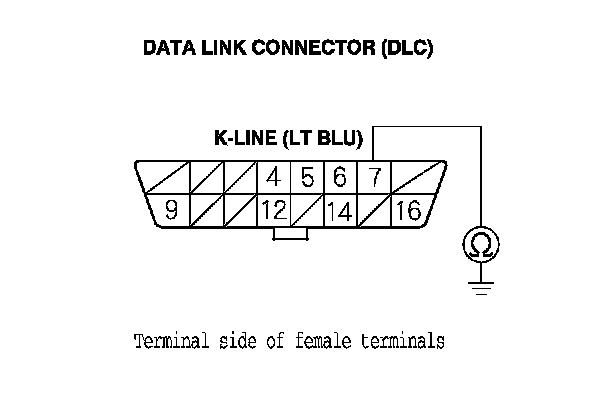 21. Check for continuity between DLC terminal No. 7 and body ground.