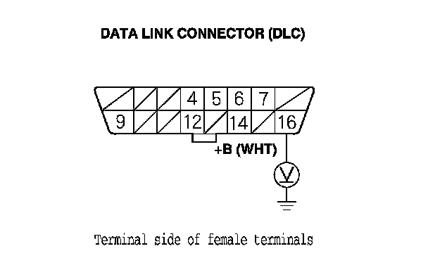 30. Measure the voltage between DLC terminals No. 4 and No. 16.