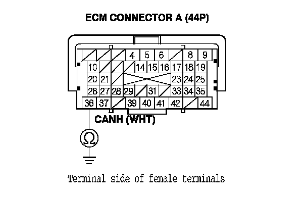 36. Check for continuity between ECM connector terminal A36 and body ground.