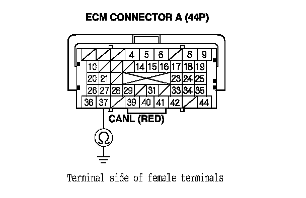 38. Check for continuity between ECM connector terminal A37 and body ground.