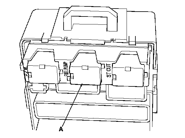 51. Remove PGM-FI main relay 2 (FUEL PUMP) (A) from the under-dash fuse/relay box.