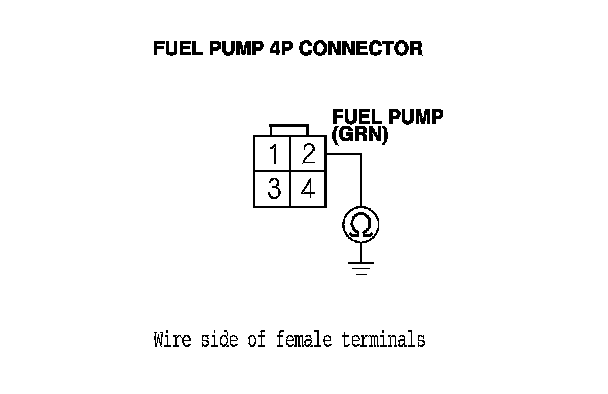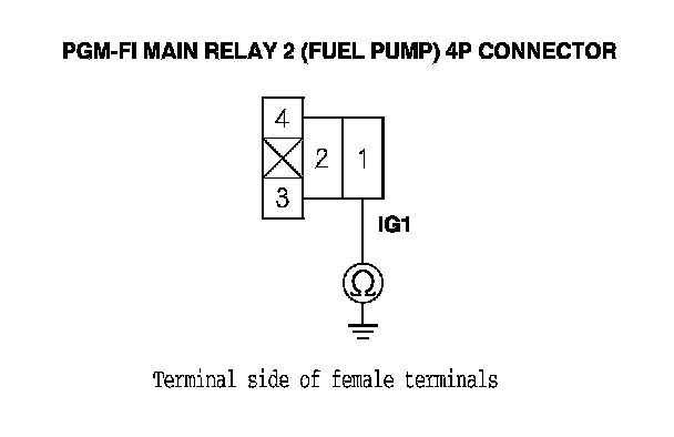 53. Check for continuity between PGM-FI main relay 2 (FUEL PUMP) 4P connector terminal No. 1 and body ground.