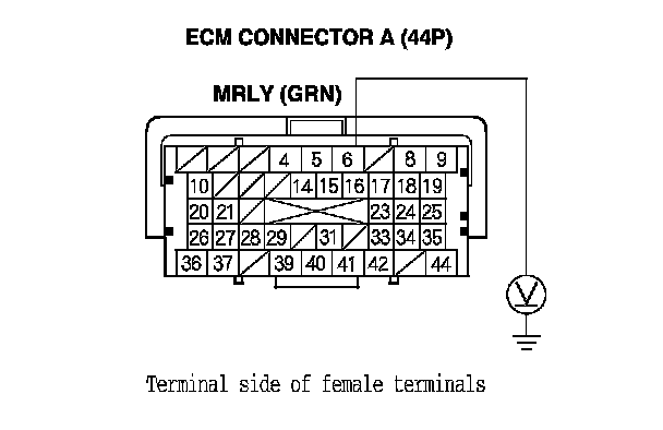 64. Measure the voltage between ECM connector terminal A6 and body ground.