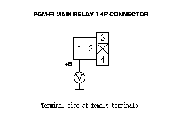 67. Measure the voltage between PGM-FI main relay 1 4P connector terminal No. 3 and body ground.