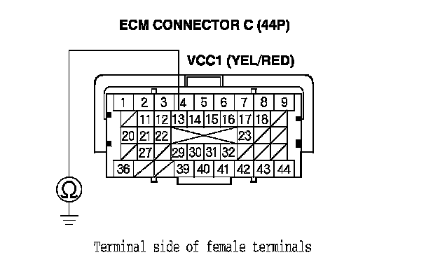 55. Check for continuity between ECM connector terminal C36 and body ground.