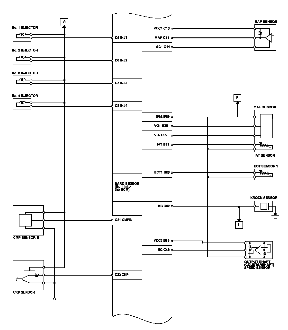 The CKP sensor detects crankshaft speed and is used by the ECM to determine ignition timing and timing for fuel injection of each cylinder, and engine misfire detection.