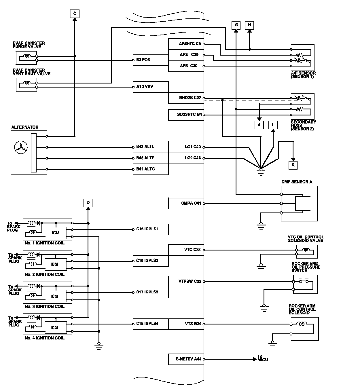 ECM Inputs and Outputs at Connector C (circle) (44P)