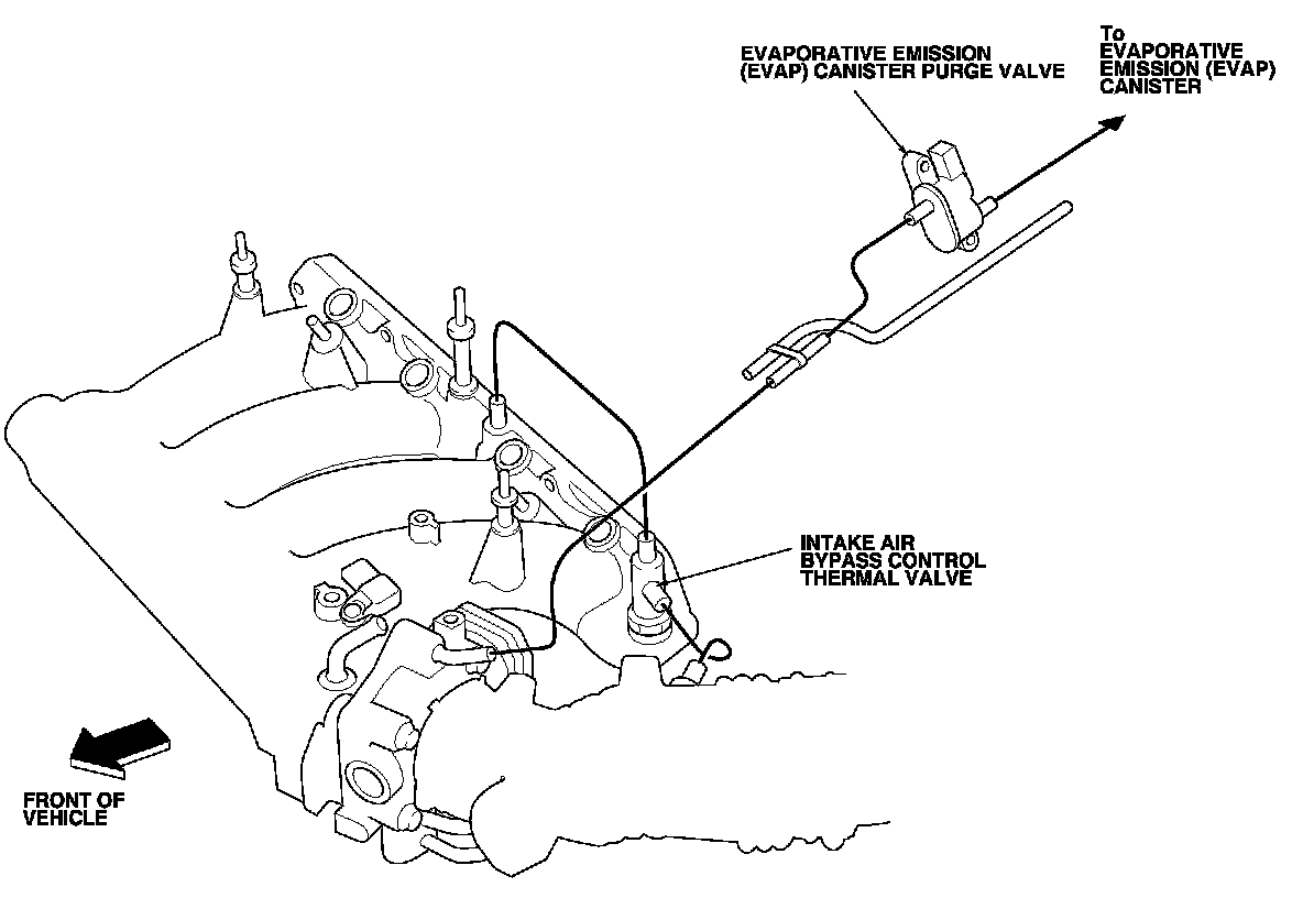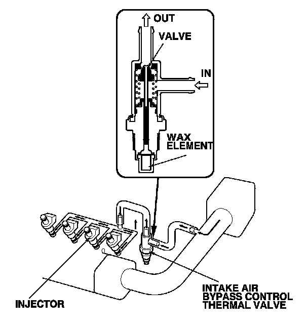 The amount of air is regulated by engine coolant temperature. Once the engine is hot, the intake air bypass control thermal valve closes, stopping air to the injector.