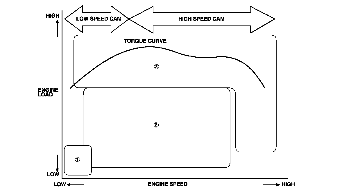 - The system reduces the cam advance at idle, stabilizes combustion, and reduces engine speed.