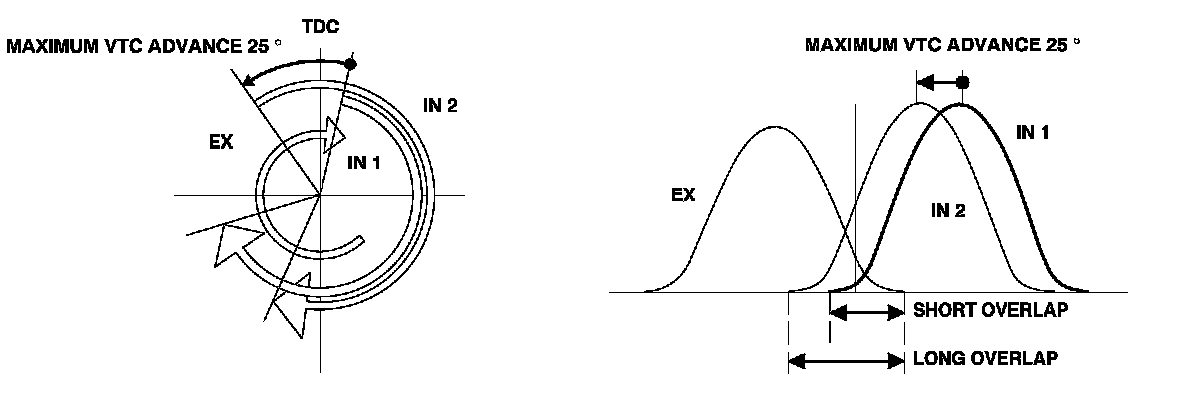 - If a malfunction occurs, the VTC system control is disabled and the valve timing is fixed at the fully retarded position.