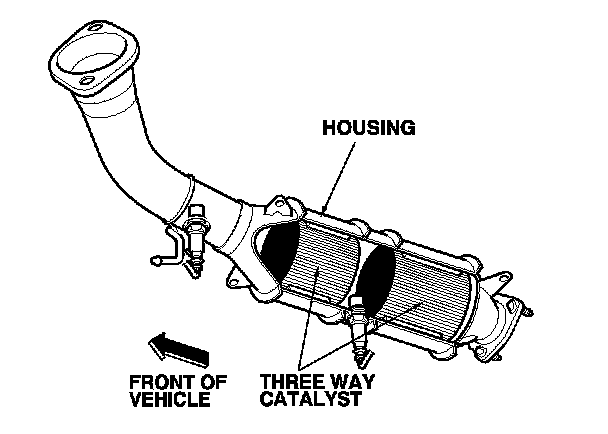 The TWC converts hydrocarbons (HC), carbon monoxide (CO), and oxides of nitrogen (NOx) in the exhaust gas to carbon dioxide (CO2), nitrogen (N2), and water vapor.