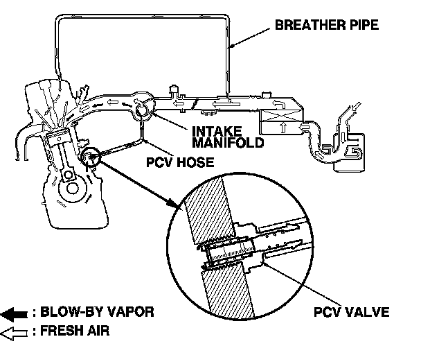 The PCV valve prevents blow-by gasses from escaping into the atmosphere by venting them into the intake manifold.