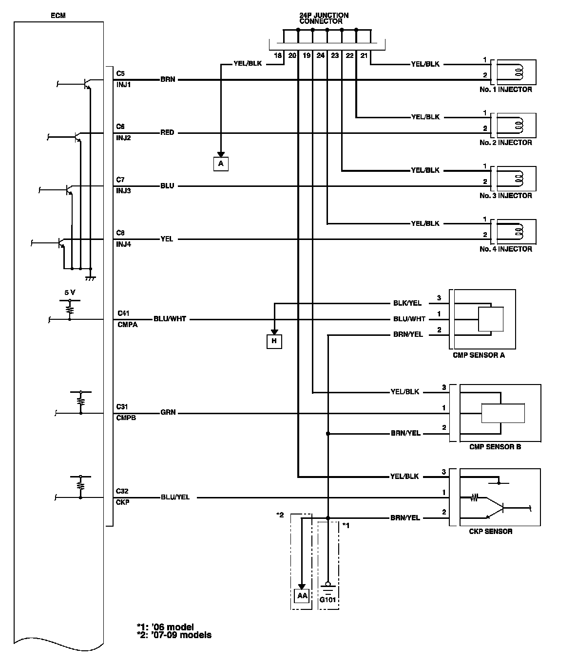 The programmed fuel injection (PGM-FI) system is a sequential multiport fuel injection system.