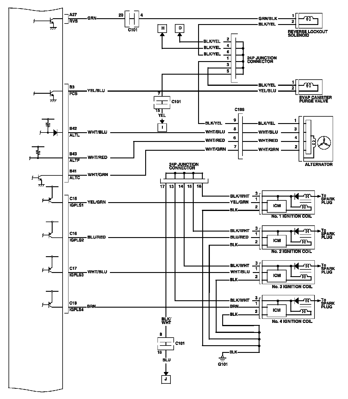 The ECM contains the memory for basic ignition timing at various engine speeds and manifold absolute pressures. It also adjusts the timing according to engine coolant temperature and intake air temperature.