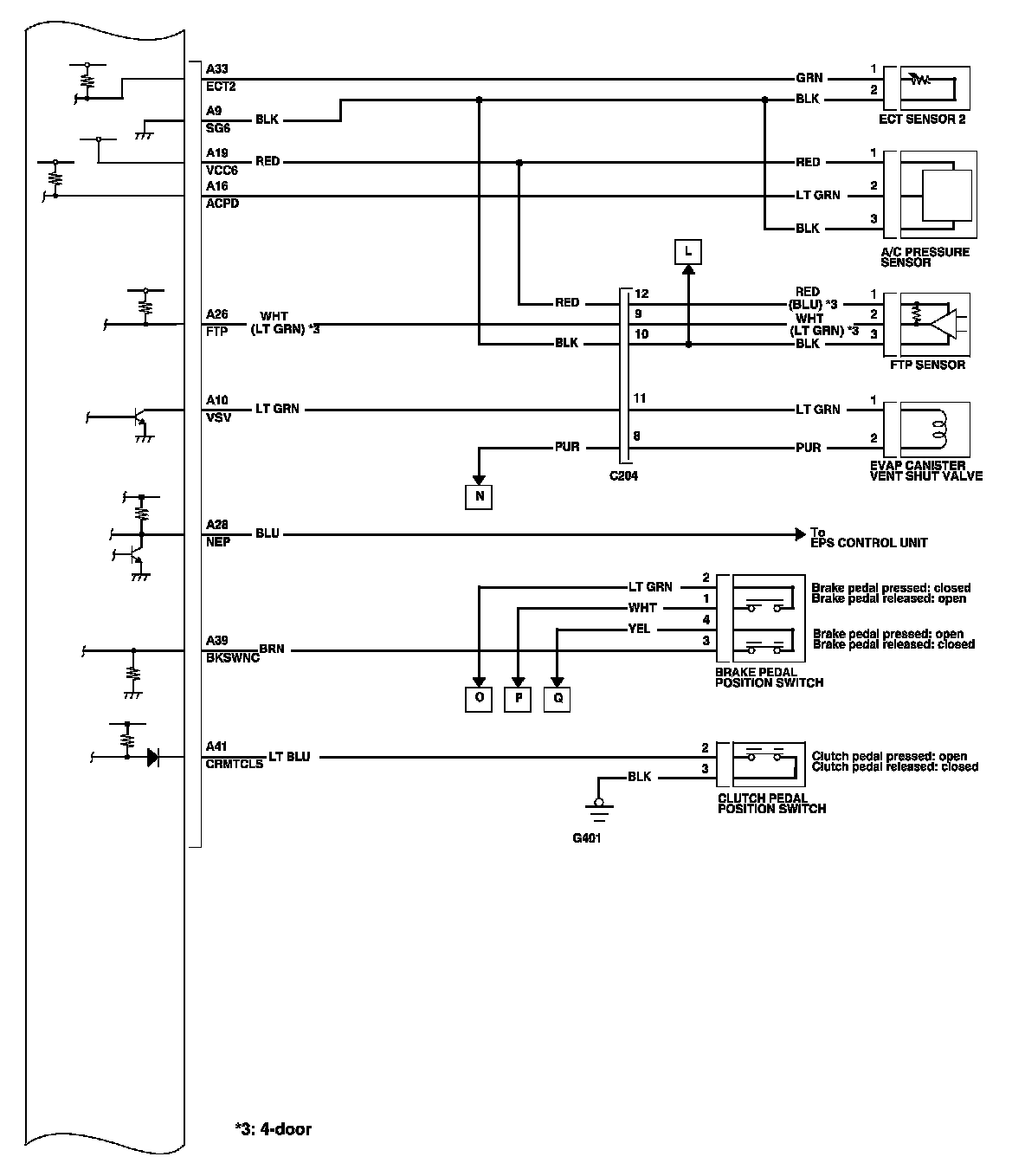 ECM Inputs and Outputs at Connector A (square) (44P)