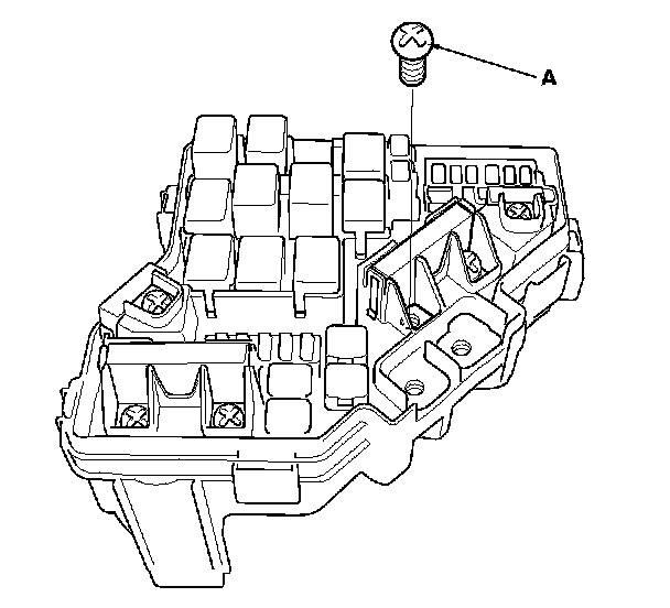 2. Remove the under-hood fuse/relay box. Under-Hood Fuse/Relay Box Removal and Installation