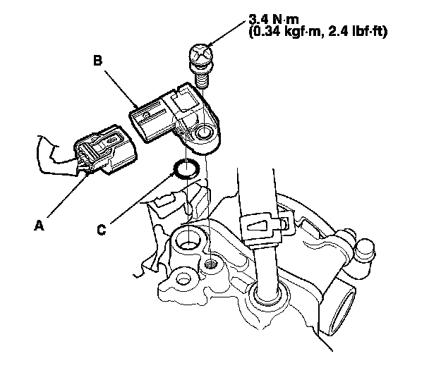 Install the parts in the reverse order of removal with a new O-ring (C).