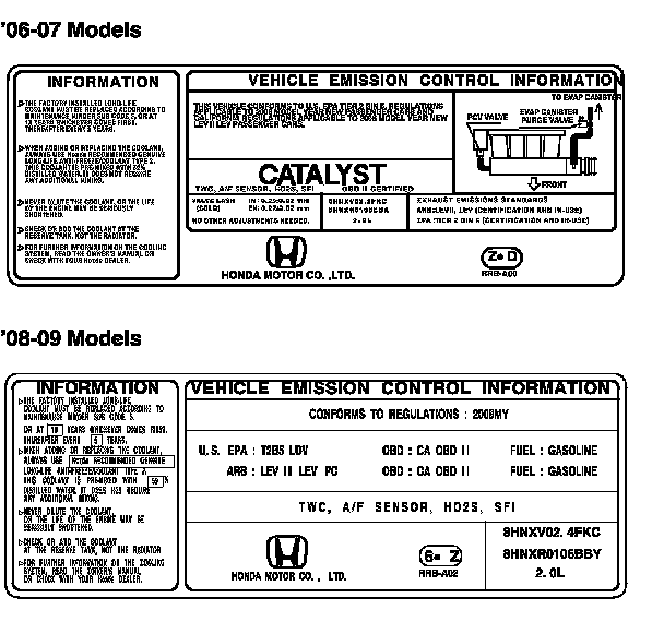 THIS VEHICLE CONFORMS TO U.S. EPA TIER 2 BIN 5 REGULATIONS APPLICABLE TO 2006 MODEL YEAR NEW PASSENGER CARS AND CALIFORNIA REGULATIONS APPLICABLE TO 2006 MODEL YEAR NEW LEV II LEV PASSENGER CARS.