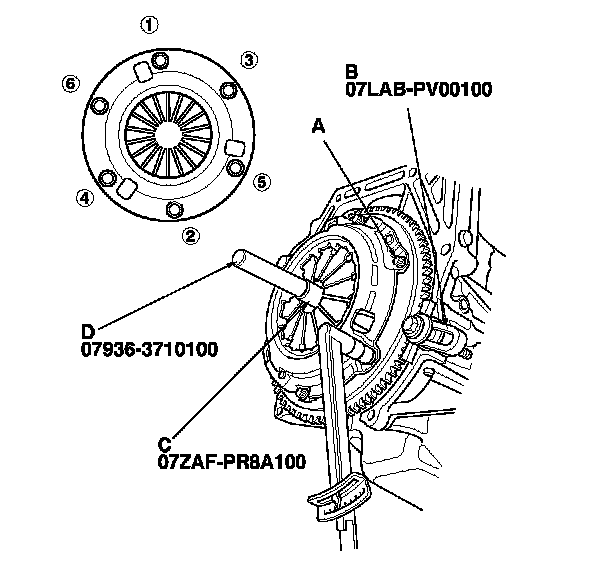 Torque the pressure plate mounting bolts in a crisscross pattern. Tighten the bolts in several steps to prevent warping the diaphragm spring.