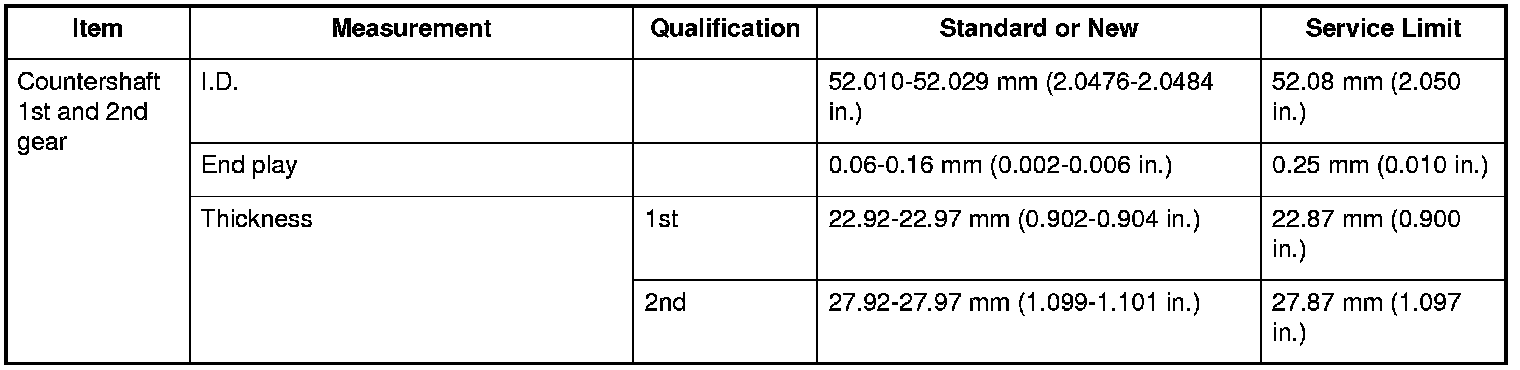 Countershaft 1st and 2nd gear Specifications