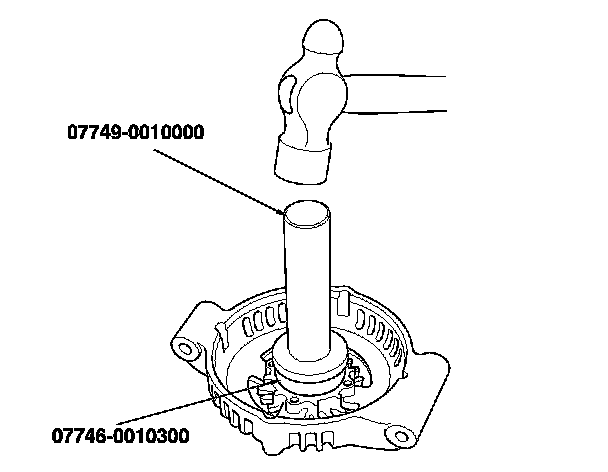 12. Install a new front bearing in the drive-end housing with a hammer, the driver, and the attachment 42 x 47 mm.