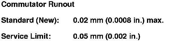 - If the commutator runout is within the service limit, check the commutator for carbon dust or brass chips between the segments.
